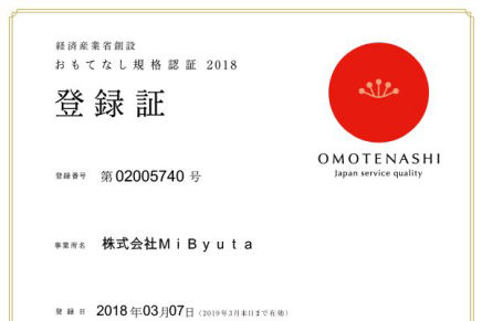経済産業省創設 おもてなし規格認証2018「紅」を